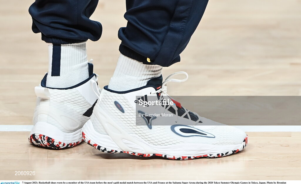 7 August 2021; Basketball shoes worn be a member of the USA team before the men's gold medal match between the USA and France at the Saitama Super Arena during the 2020 Tokyo Summer Olympic Games in Tokyo, Japan. Photo by Brendan Moran/Sportsfile
