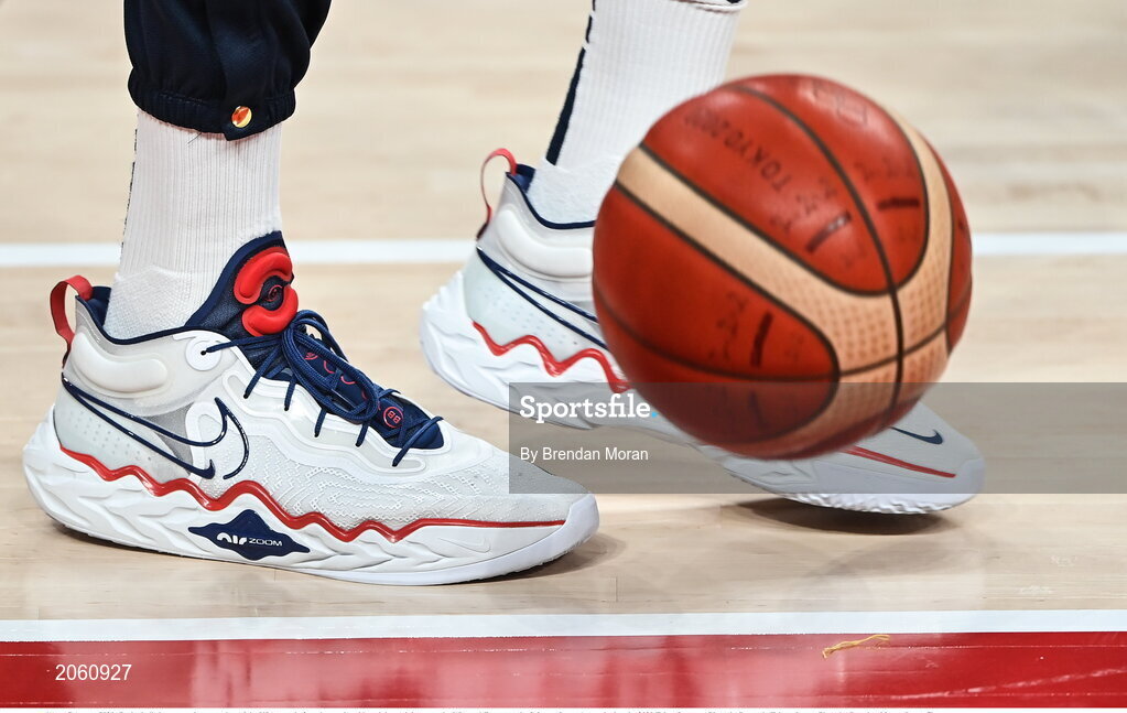 7 August 2021; Basketball shoes worn be a member of the USA team before the men's gold medal match between the USA and France at the Saitama Super Arena during the 2020 Tokyo Summer Olympic Games in Tokyo, Japan. Photo by Brendan Moran/Sportsfile