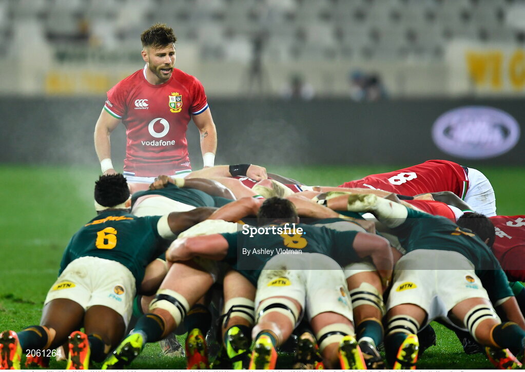 7 August 2021; Ali Price of British and Irish Lions awaits the ball from a scrum during the third test of the British and Irish Lions tour match between South Africa and British and Irish Lions at Cape Town Stadium in Cape Town, South Africa. Photo by Ashley Vlotman/Sportsfile