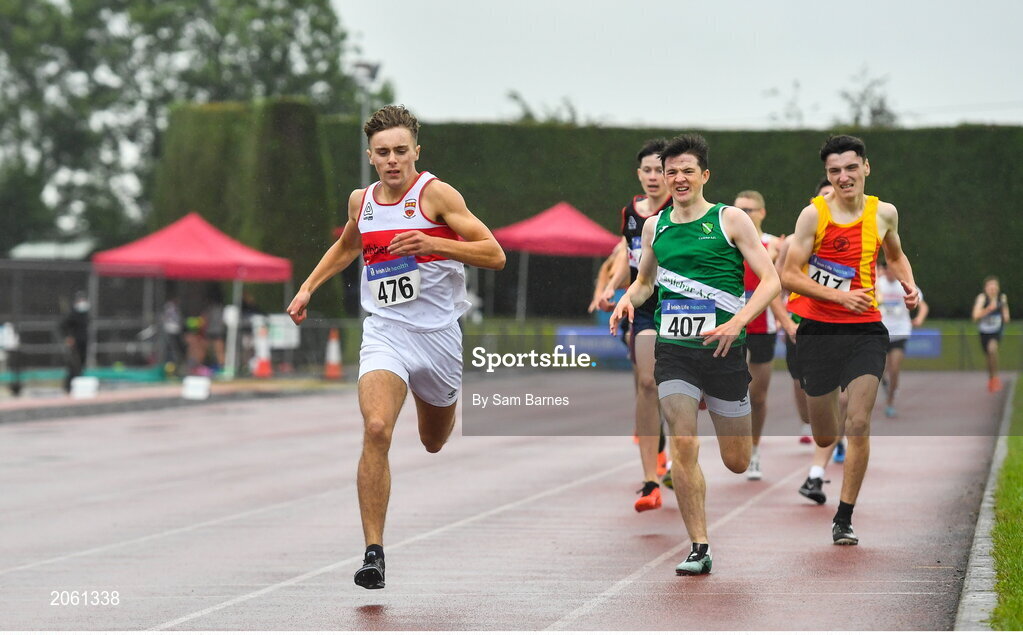 7 August 2021; Gavin Sweetnam of Skibbereen AC, Cork, right, on his way to winning the Boy's U16 800m during day two of the Irish Life Health National Juvenile Track & Field Championships at Tullamore Harriers Stadium in Tullamore, Offaly. Photo by Sam Barnes/Sportsfile