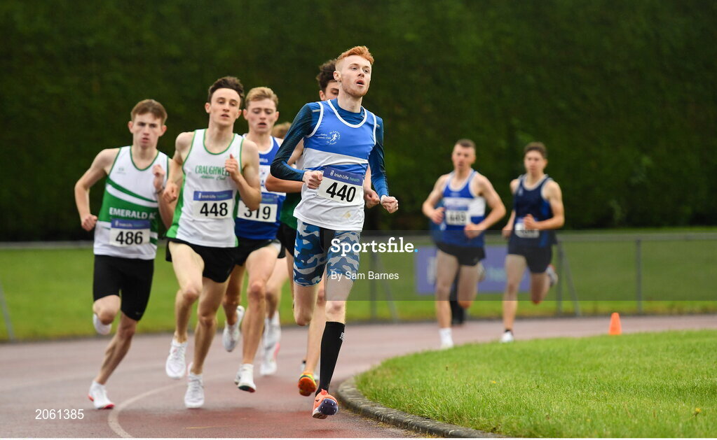7 August 2021; Aaron Shorten of St Laurence O'Toole AC, Carlow, leads the field whilst competing in the Boy's U19 800m during day two of the Irish Life Health National Juvenile Track & Field Championships at Tullamore Harriers Stadium in Tullamore, Offaly. Photo by Sam Barnes/Sportsfile