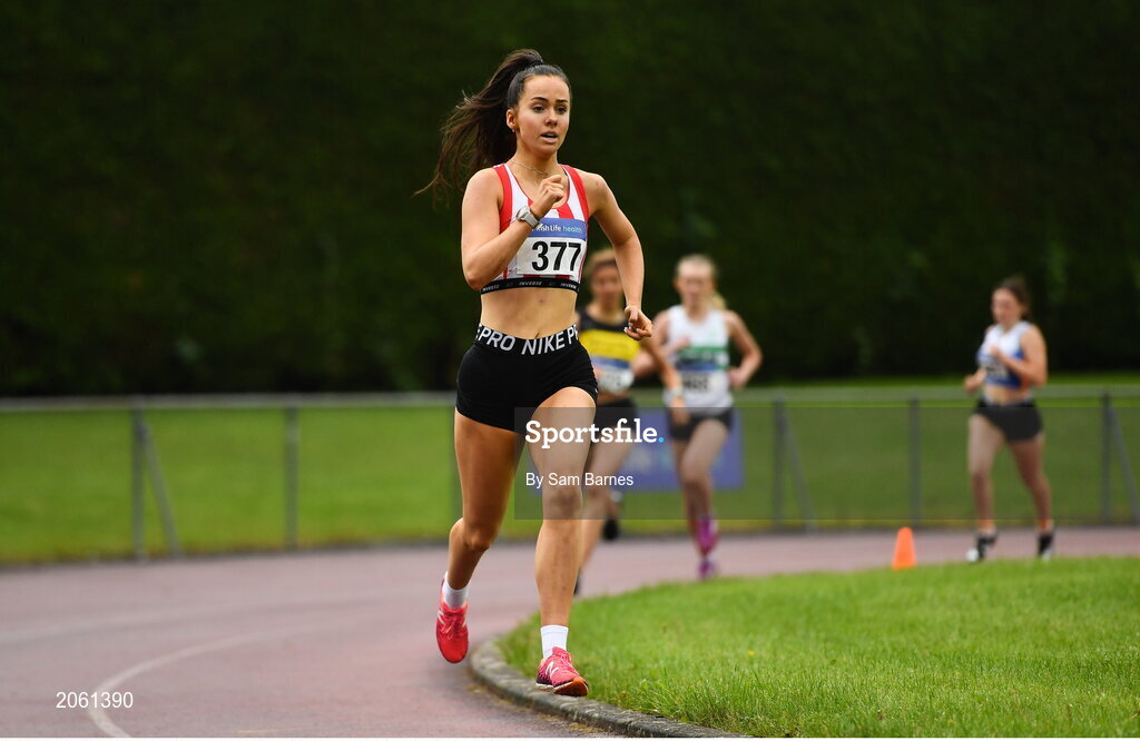 7 August 2021; Jennifer Nugent of Trim AC, Meath, competing in the Girl's U19 800m during day two of the Irish Life Health National Juvenile Track & Field Championships at Tullamore Harriers Stadium in Tullamore, Offaly. Photo by Sam Barnes/Sportsfile