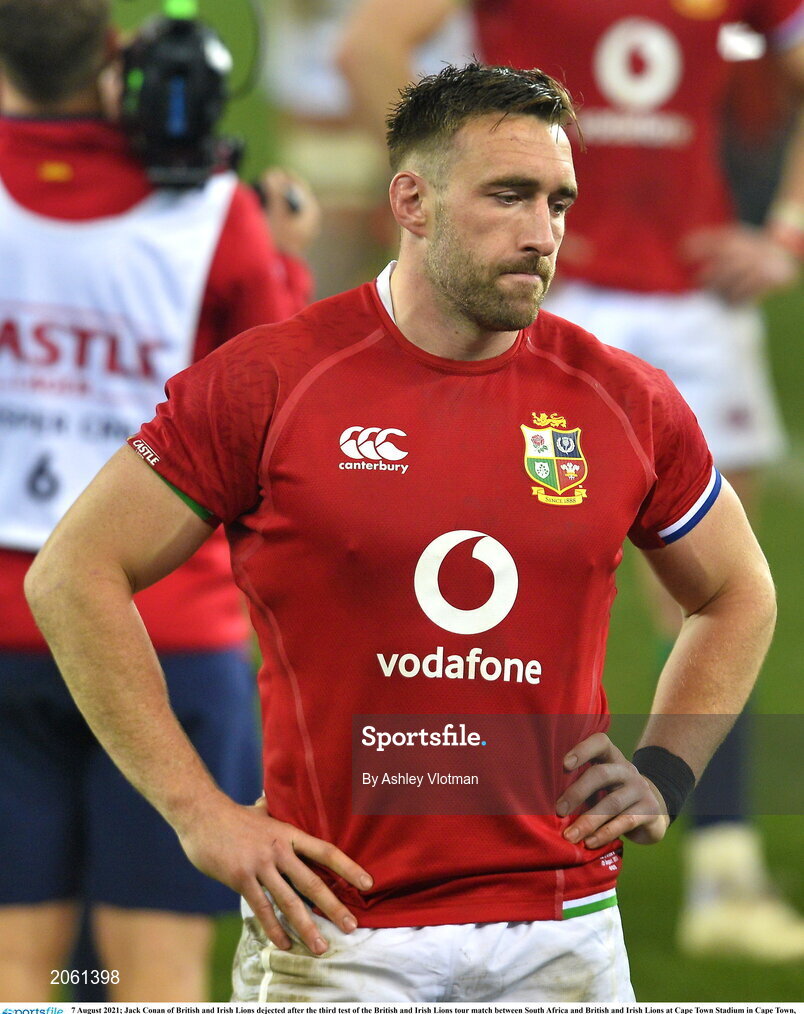 7 August 2021; Jack Conan of British and Irish Lions dejected after the third test of the British and Irish Lions tour match between South Africa and British and Irish Lions at Cape Town Stadium in Cape Town, South Africa. Photo by Ashley Vlotman/Sportsfile