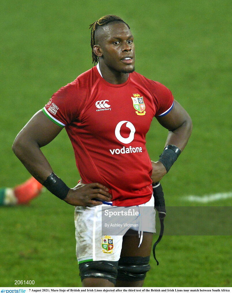 7 August 2021; Maro Itoje of British and Irish Lions dejected after the third test of the British and Irish Lions tour match between South Africa and British and Irish Lions at Cape Town Stadium in Cape Town, South Africa. Photo by Ashley Vlotman/Sportsfile