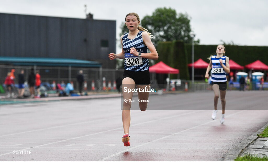7 August 2021; Isa McCarron of Lagan Valley AC, Antrim, on her way to winning the Girls U14 800m during day two of the Irish Life Health National Juvenile Track & Field Championships at Tullamore Harriers Stadium in Tullamore, Offaly. Photo by Sam Barnes/Sportsfile