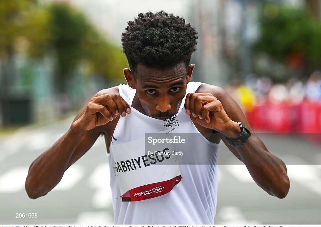 8 August 2021; Tachlowini Gabriyesos of Refugee Olympic Team after the men's marathon at Sapporo Odori Park on day 16 during the 2020 Tokyo Summer Olympic Games in Sapporo, Japan. Photo by Ramsey Cardy/Sportsfile