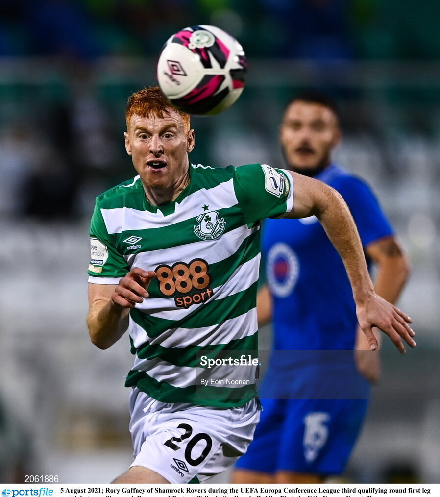 5 August 2021; Rory Gaffney of Shamrock Rovers during the UEFA Europa Conference League third qualifying round first leg match between Shamrock Rovers and Teuta at Tallaght Stadium in Dublin. Photo by Eóin Noonan/Sportsfile