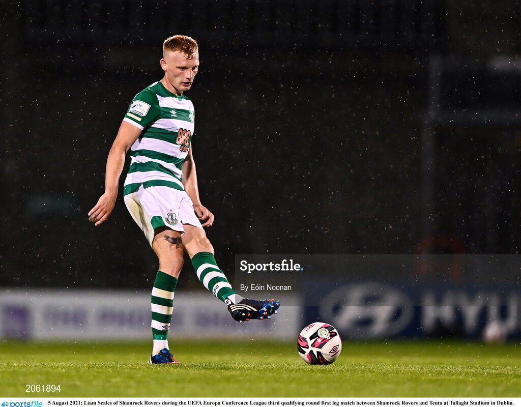 5 August 2021; Liam Scales of Shamrock Rovers during the UEFA Europa Conference League third qualifying round first leg match between Shamrock Rovers and Teuta at Tallaght Stadium in Dublin. Photo by Eóin Noonan/Sportsfile