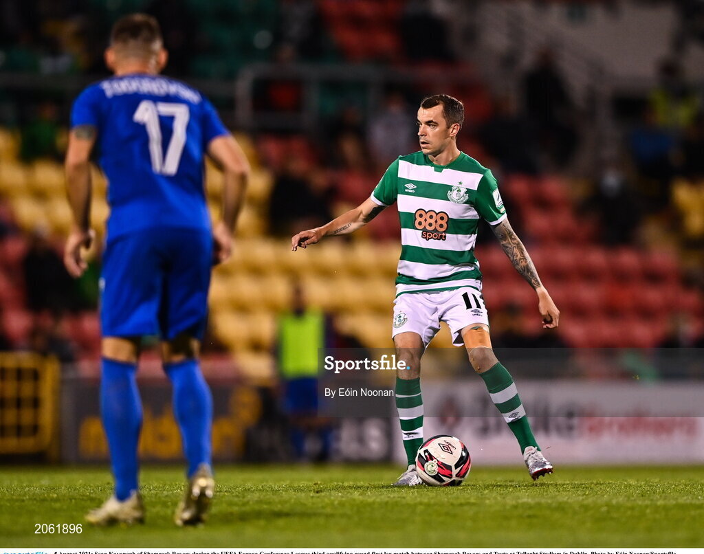 5 August 2021; Sean Kavanagh of Shamrock Rovers during the UEFA Europa Conference League third qualifying round first leg match between Shamrock Rovers and Teuta at Tallaght Stadium in Dublin. Photo by Eóin Noonan/Sportsfile