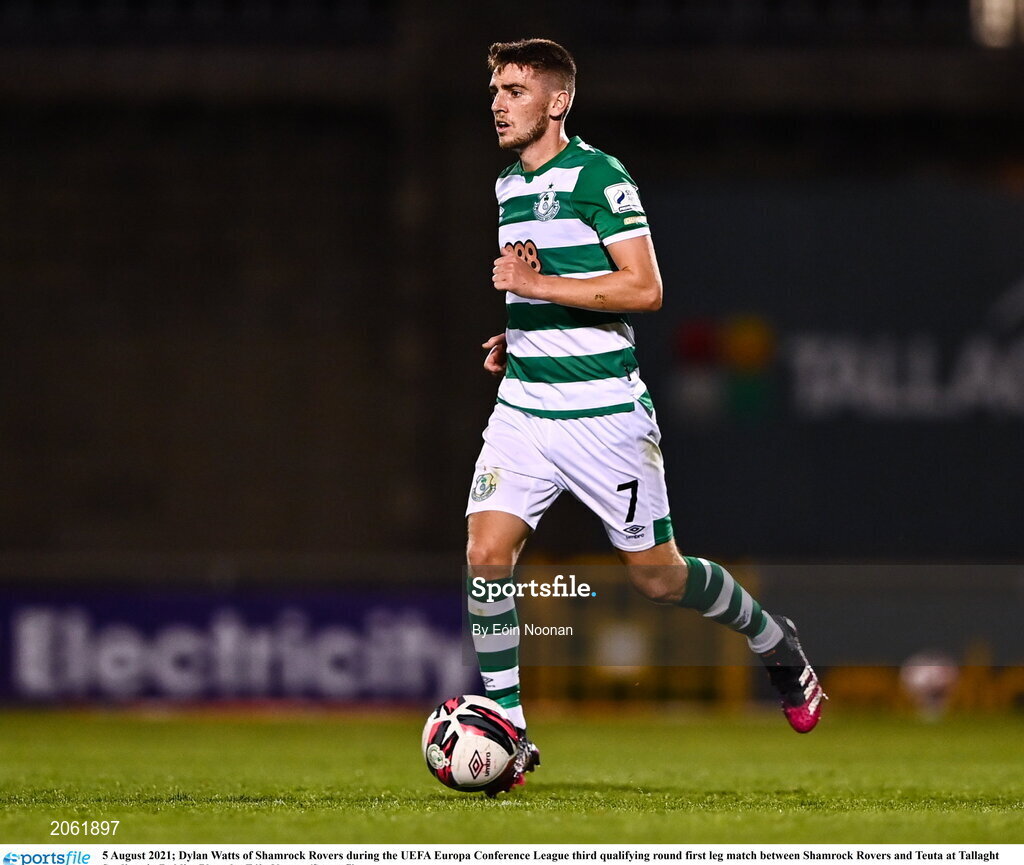 5 August 2021; Dylan Watts of Shamrock Rovers during the UEFA Europa Conference League third qualifying round first leg match between Shamrock Rovers and Teuta at Tallaght Stadium in Dublin. Photo by Eóin Noonan/Sportsfile