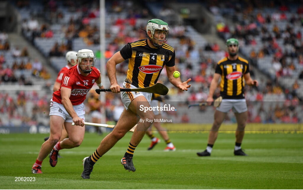 8 August 2021; Paddy Deegan of Kilkenny gets aways from Patrick Horgan of Cork during the GAA Hurling All-Ireland Senior Championship semi-final match between Kilkenny and Cork at Croke Park in Dublin. Photo by Ray McManus/Sportsfile