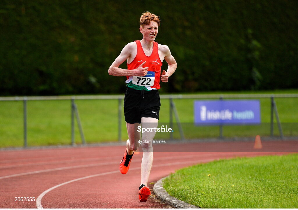 8 August 2021; Padraig Corduff of Westport AC, Mayo, competing in the Boy's U16 3000m during day three of the Irish Life Health National Juvenile Track & Field Championships at Tullamore Harriers Stadium in Tullamore, Offaly. Photo by Sam Barnes/Sportsfile