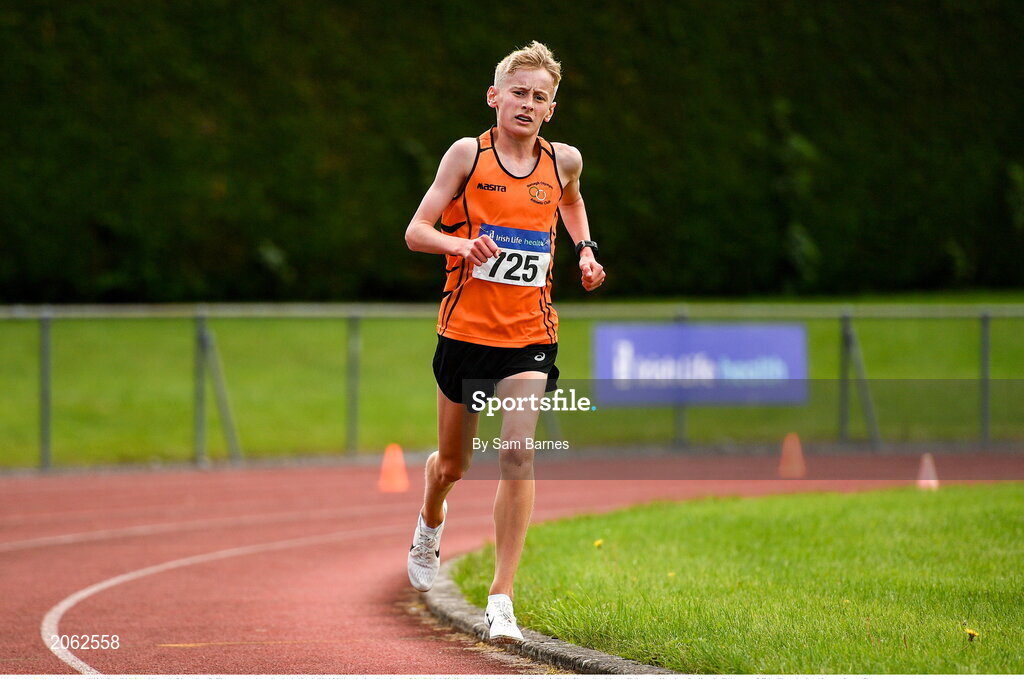 8 August 2021; Ben Walshe of Nenagh Olympic AC, Tipperary, competing in the Boy's U16 3000m during day three of the Irish Life Health National Juvenile Track & Field Championships at Tullamore Harriers Stadium in Tullamore, Offaly. Photo by Sam Barnes/Sportsfile