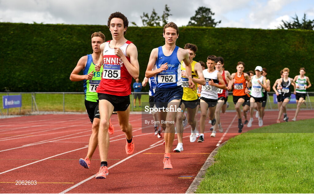 8 August 2021; Dylan Casey of Ennis Track AC, Clare, leads the field whilst competing in the Boy's U19 3000m during day three of the Irish Life Health National Juvenile Track & Field Championships at Tullamore Harriers Stadium in Tullamore, Offaly. Photo by Sam Barnes/Sportsfile