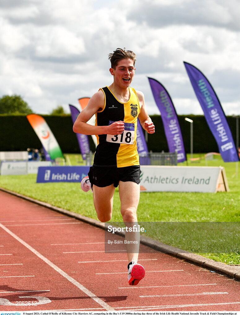 8 August 2021; Cathal O'Reilly of Kilkenny City Harriers AC, competing in the Boy's U19 3000m during day three of the Irish Life Health National Juvenile Track & Field Championships at Tullamore Harriers Stadium in Tullamore, Offaly. Photo by Sam Barnes/Sportsfile