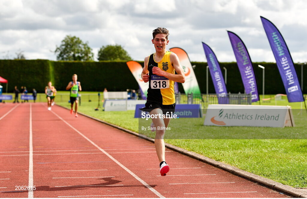 8 August 2021; Cathal O'Reilly of Kilkenny City Harriers AC, competing in the Boy's U19 3000m during day three of the Irish Life Health National Juvenile Track & Field Championships at Tullamore Harriers Stadium in Tullamore, Offaly. Photo by Sam Barnes/Sportsfile