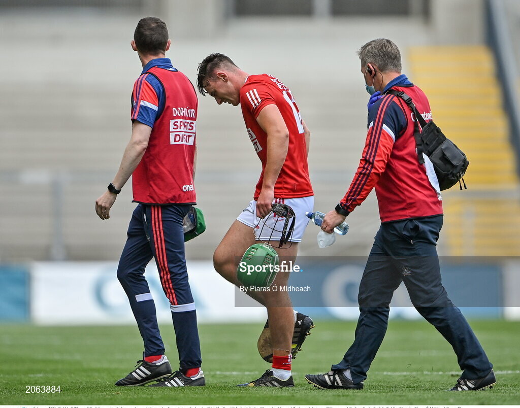8 August 2021; Robbie O'Flynn of Cork leaves the pitch to receive medial attention for an injury during the GAA Hurling All-Ireland Senior Championship semi-final match between Kilkenny and Cork at Croke Park in Dublin. Photo by Piaras Ó Mídheach/Sportsfile