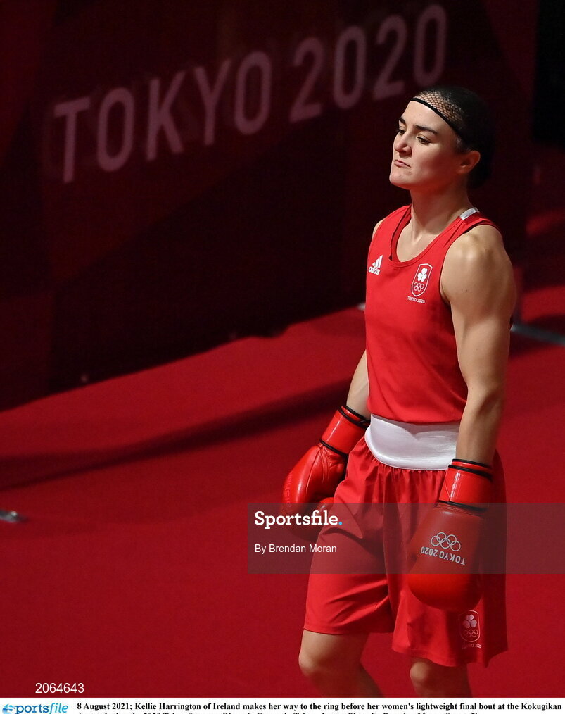 8 August 2021; Kellie Harrington of Ireland makes her way to the ring before her women's lightweight final bout at the Kokugikan Arena during the 2020 Tokyo Summer Olympic Games in Tokyo, Japan. Photo by Brendan Moran/Sportsfile