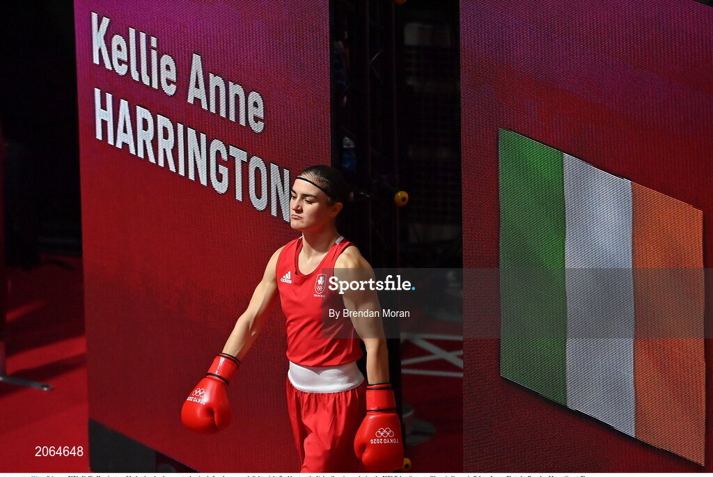 8 August 2021; Kellie Harrington of Ireland makes her way to the ring before her women's lightweight final bout at the Kokugikan Arena during the 2020 Tokyo Summer Olympic Games in Tokyo, Japan. Photo by Brendan Moran/Sportsfile