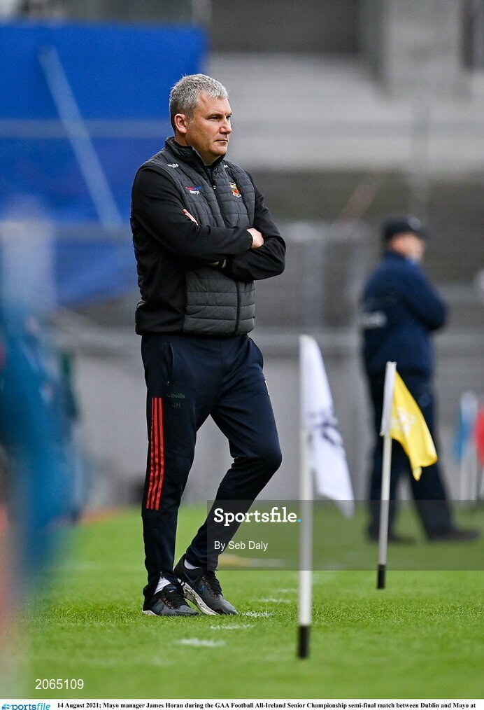 14 August 2021; Mayo manager James Horan during the GAA Football All-Ireland Senior Championship semi-final match between Dublin and Mayo at Croke Park in Dublin. Photo by Seb Daly/Sportsfile