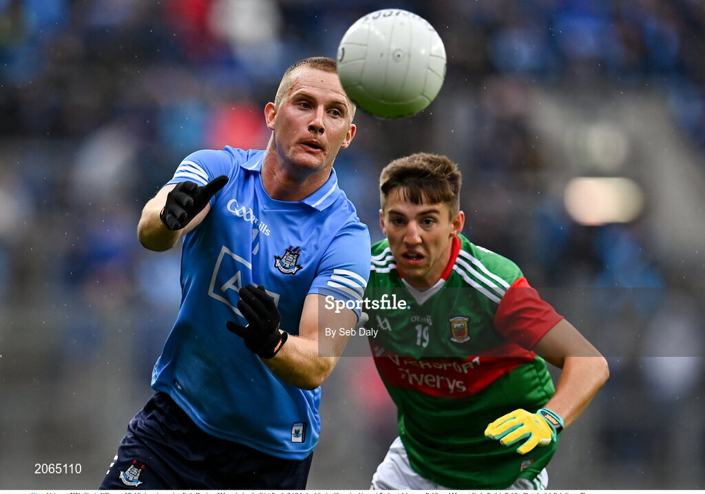 14 August 2021; Ciarán Kilkenny of Dublin in action against Enda Hession of Mayo during the GAA Football All-Ireland Senior Championship semi-final match between Dublin and Mayo at Croke Park in Dublin. Photo by Seb Daly/Sportsfile
