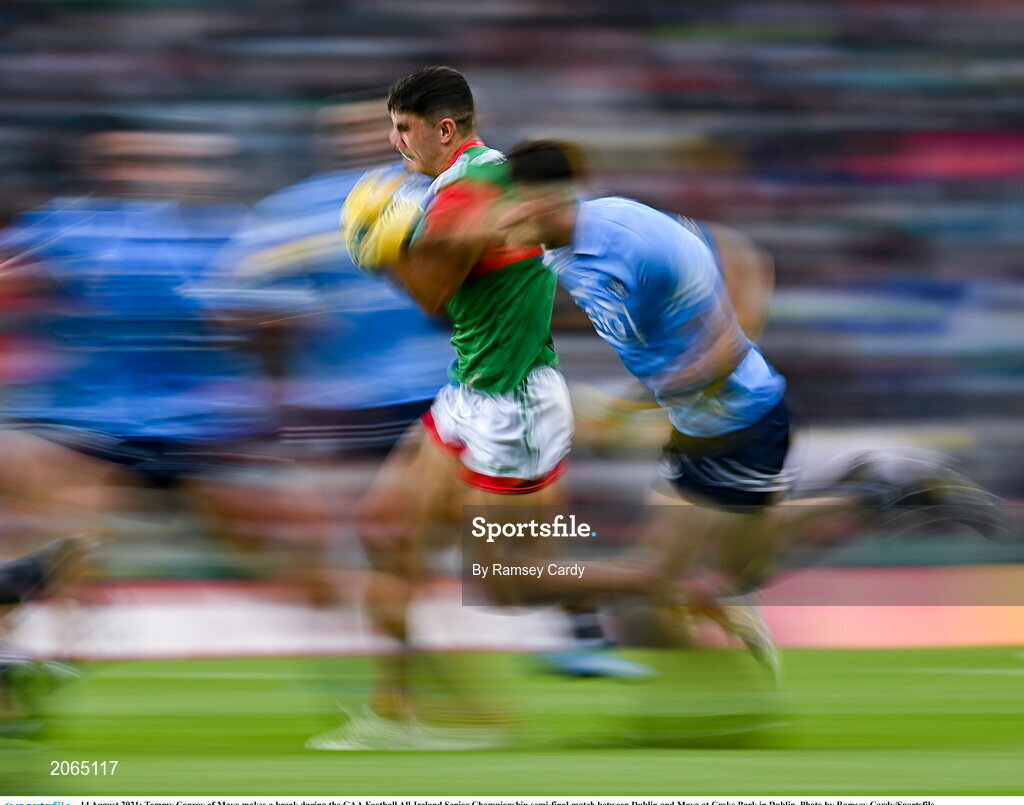 14 August 2021; Tommy Conroy of Mayo makes a break during the GAA Football All-Ireland Senior Championship semi-final match between Dublin and Mayo at Croke Park in Dublin. Photo by Ramsey Cardy/Sportsfile
