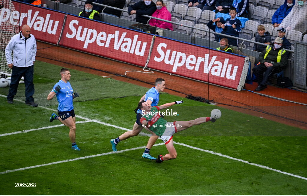 14 August 2021; Diarmuid O'Connor of Mayo keeps the ball in play in the build up to a Mayo point during the GAA Football All-Ireland Senior Championship semi-final match between Dublin and Mayo at Croke Park in Dublin. Photo by Stephen McCarthy/Sportsfile