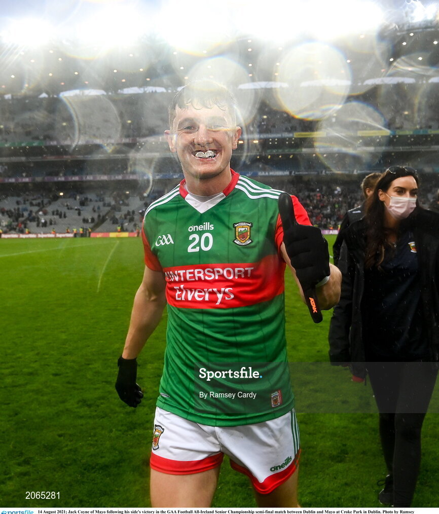 14 August 2021; Jack Coyne of Mayo following his side's victory in the GAA Football All-Ireland Senior Championship semi-final match between Dublin and Mayo at Croke Park in Dublin. Photo by Ramsey Cardy/Sportsfile
