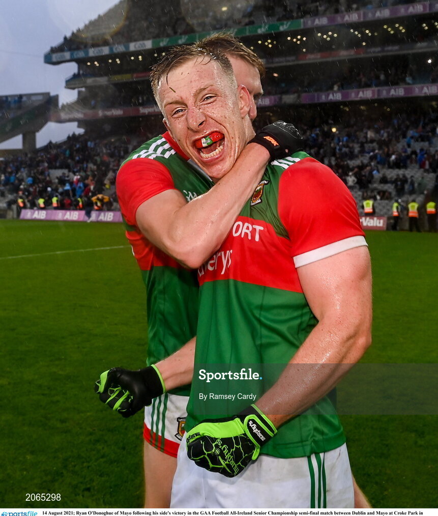 14 August 2021; Ryan O'Donoghue of Mayo following his side's victory in the GAA Football All-Ireland Senior Championship semi-final match between Dublin and Mayo at Croke Park in Dublin. Photo by Ramsey Cardy/Sportsfile