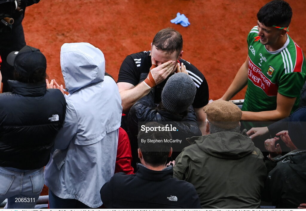 14 August 2021; Mayo goalkeeper Rob Hennelly is greeted by family and supporters following the GAA Football All-Ireland Senior Championship semi-final match between Dublin and Mayo at Croke Park in Dublin. Photo by Stephen McCarthy/Sportsfile