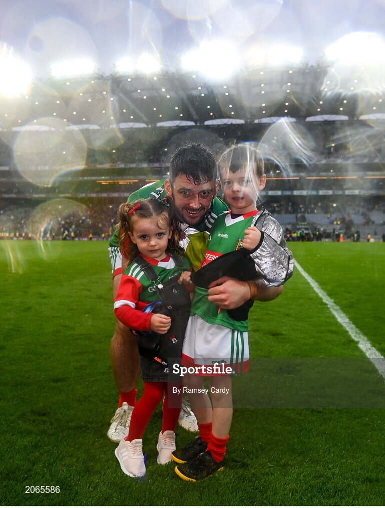 14 August 2021; Brendan Harrison of Mayo with his children Fiadh and Fionn following the GAA Football All-Ireland Senior Championship semi-final match between Dublin and Mayo at Croke Park in Dublin. Photo by Ramsey Cardy/Sportsfile