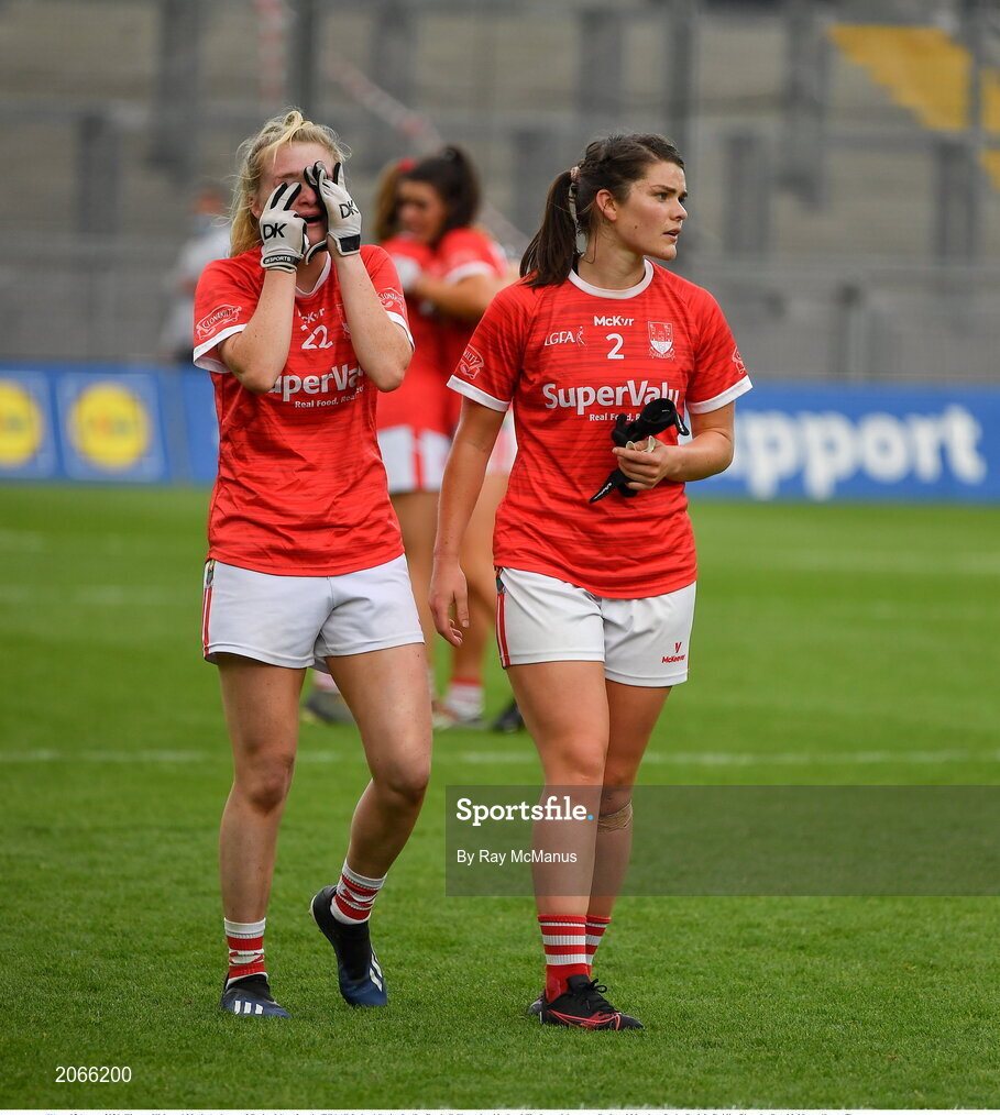 15 August 2021; Eimear Kiely and Marie Ambrose of Cork, right, after the TG4 All-Ireland Senior Ladies Football Championship Semi-Final match between Cork and Meath at Croke Park in Dublin. Photo by Ray McManus/Sportsfile