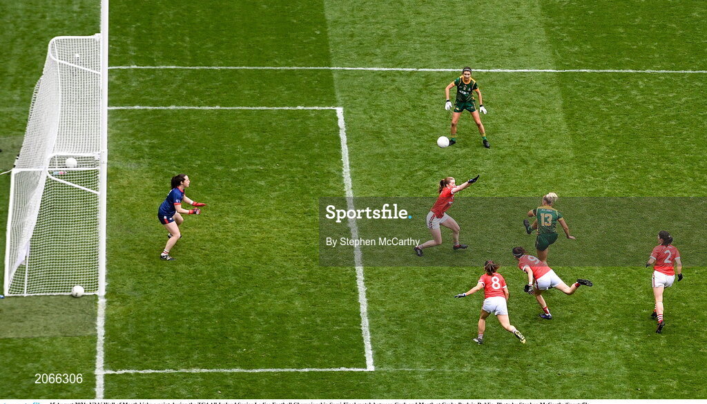 15 August 2021; Vikki Wall of Meath kicks a point during the TG4 All-Ireland Senior Ladies Football Championship Semi-Final match between Cork and Meath at Croke Park in Dublin. Photo by Stephen McCarthy/Sportsfile