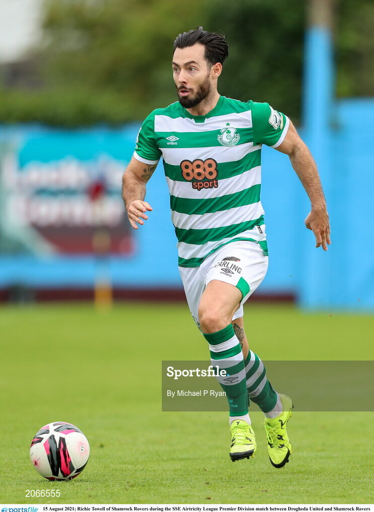 15 August 2021; Richie Towell of Shamrock Rovers during the SSE Airtricity League Premier Division match between Drogheda United and Shamrock Rovers at Head in the Game Park in Drogheda, Louth. Photo by Michael P Ryan/Sportsfile