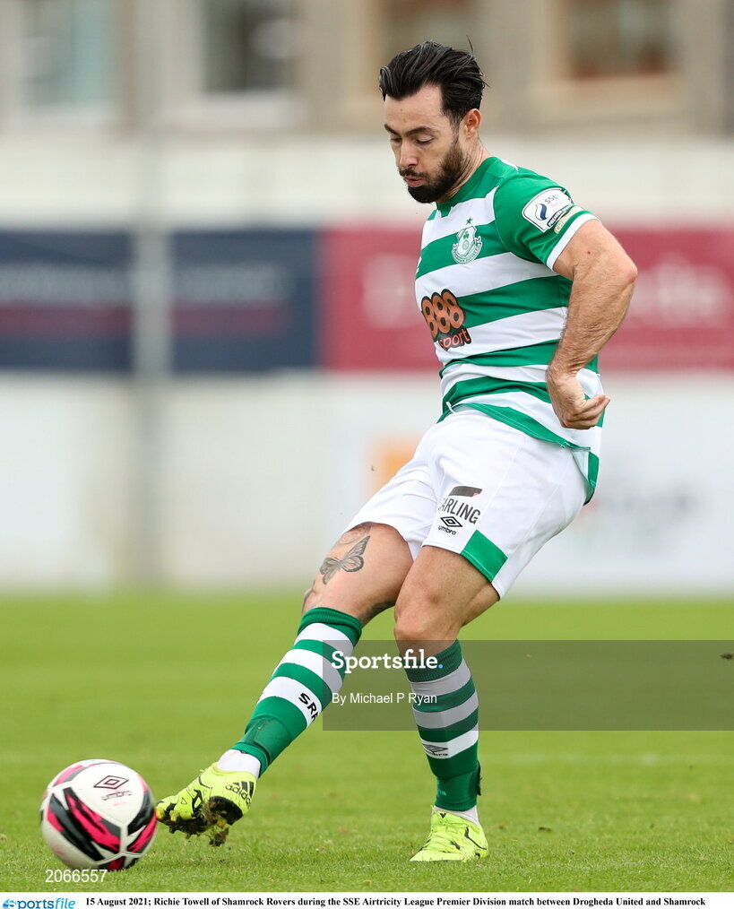15 August 2021; Richie Towell of Shamrock Rovers during the SSE Airtricity League Premier Division match between Drogheda United and Shamrock Rovers at Head in the Game Park in Drogheda, Louth. Photo by Michael P Ryan/Sportsfile