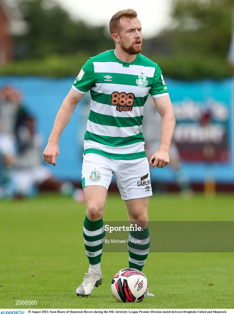 15 August 2021; Sean Hoare of Shamrock Rovers during the SSE Airtricity League Premier Division match between Drogheda United and Shamrock Rovers at Head in the Game Park in Drogheda, Louth. Photo by Michael P Ryan/Sportsfile