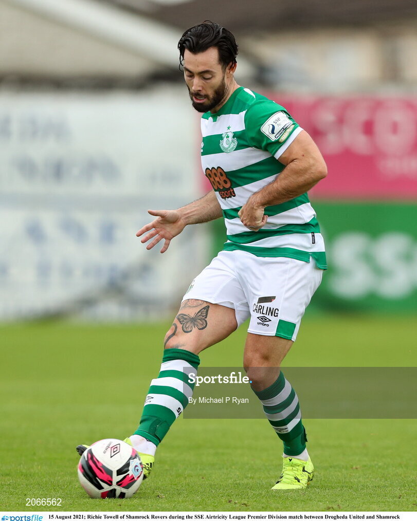 15 August 2021; Richie Towell of Shamrock Rovers during the SSE Airtricity League Premier Division match between Drogheda United and Shamrock Rovers at Head in the Game Park in Drogheda, Louth. Photo by Michael P Ryan/Sportsfile
