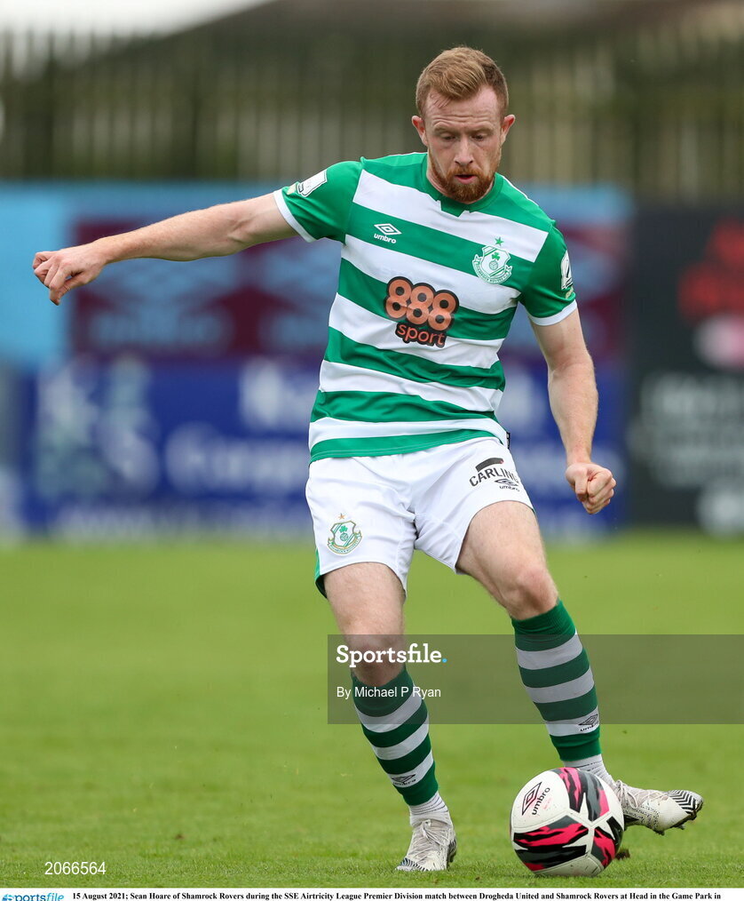 15 August 2021; Sean Hoare of Shamrock Rovers during the SSE Airtricity League Premier Division match between Drogheda United and Shamrock Rovers at Head in the Game Park in Drogheda, Louth. Photo by Michael P Ryan/Sportsfile