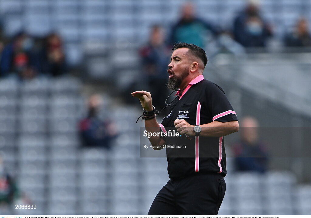 14 August 2021; Referee Séamus Mulvihill during the TG4 Ladies Football All-Ireland Championship semi-final match between Dublin and Mayo at Croke Park in Dublin. Photo by Piaras Ó Mídheach/Sportsfile