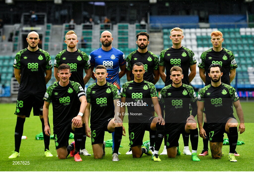 19 August 2021; The Shamrock Rovers Team before the UEFA Europa Conference League play-off first leg match between Flora Tallinn and Shamrock Rovers at A. Le Coq Arena in Tallinn, Estonia Photo by Eóin Noonan/Sportsfile