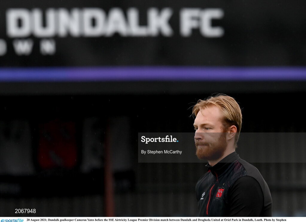 20 August 2021; Dundalk goalkeeper Cameron Yates before the SSE Airtricity League Premier Division match between Dundalk and Drogheda United at Oriel Park in Dundalk, Louth. Photo by Stephen McCarthy/Sportsfile