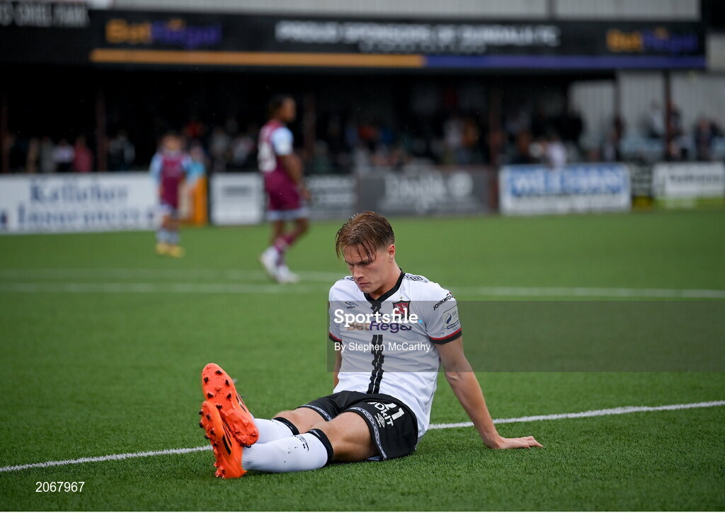 20 August 2021; Daniel Cleary of Dundalk awaits medical attention during the SSE Airtricity League Premier Division match between Dundalk and Drogheda United at Oriel Park in Dundalk, Louth. Photo by Stephen McCarthy/Sportsfile