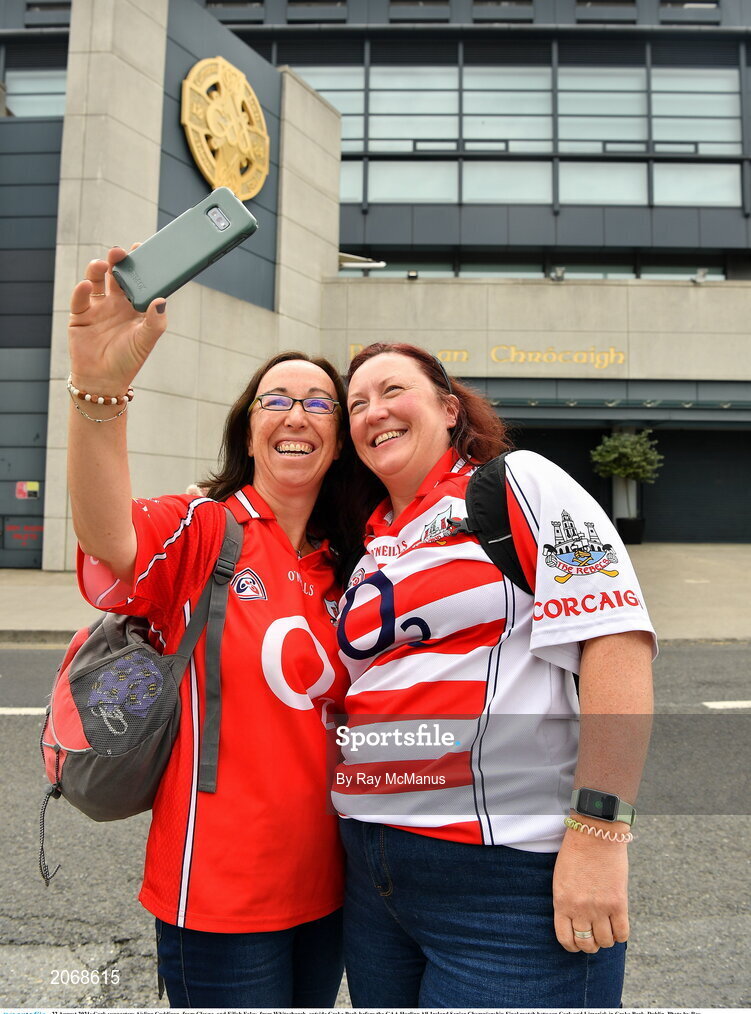 22 August 2021; Cork supporters Aisling Cuddigan, from Cloyne, and Eilish Foley, from Whitechurch, outside Croke Park before the GAA Hurling All-Ireland Senior Championship Final match between Cork and Limerick in Croke Park, Dublin. Photo by Ray McManus/Sportsfile