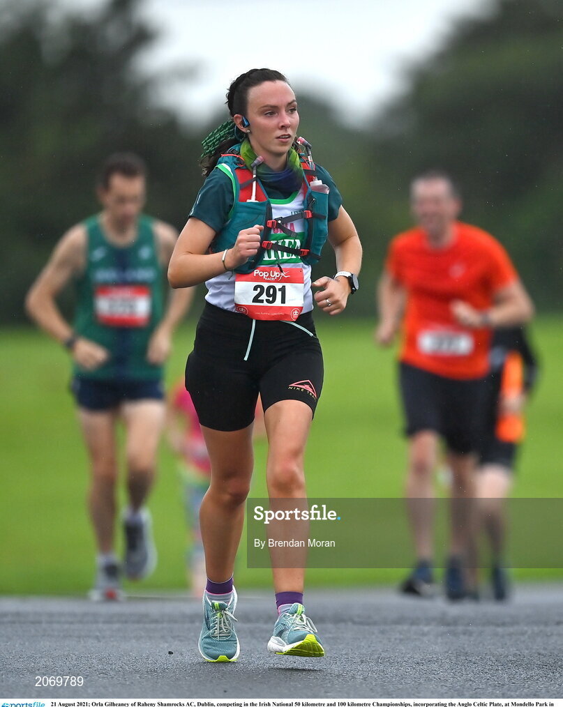 21 August 2021; Orla Gilheaney of Raheny Shamrocks AC, Dublin, competing in the Irish National 50 kilometre and 100 kilometre Championships, incorporating the Anglo Celtic Plate, at Mondello Park in Naas, Kildare. Photo by Brendan Moran/Sportsfile