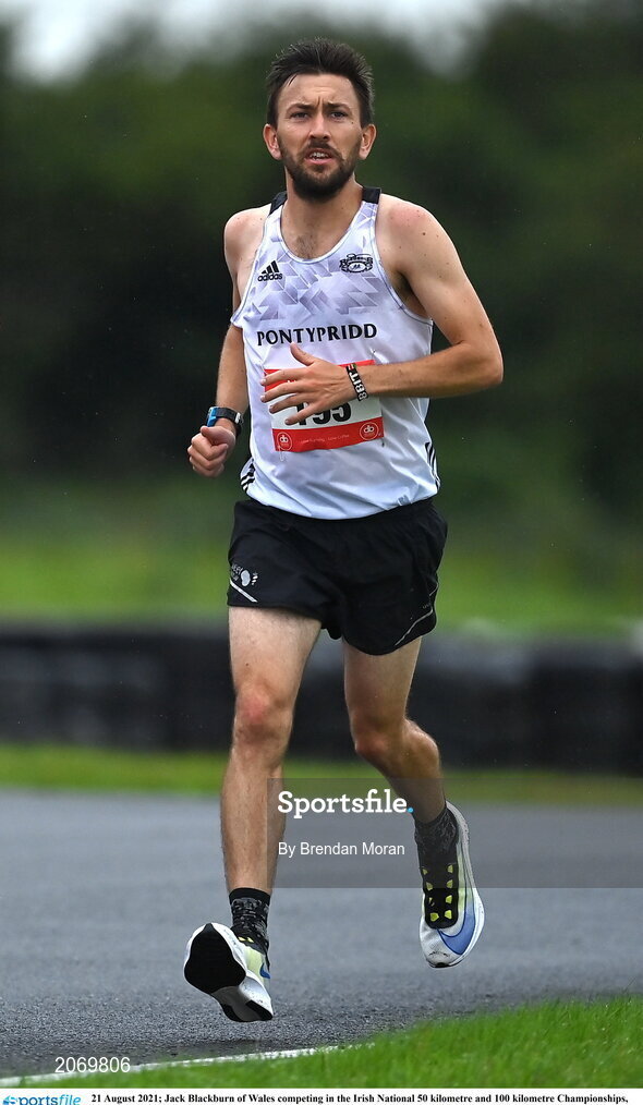 21 August 2021; Jack Blackburn of Wales competing in the Irish National 50 kilometre and 100 kilometre Championships, incorporating the Anglo Celtic Plate, at Mondello Park in Naas, Kildare. Photo by Brendan Moran/Sportsfile