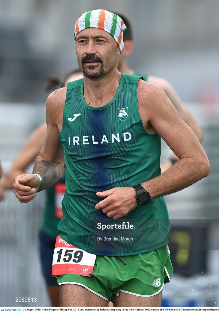 21 August 2021; Aidan Hogan of Rising Sun AC, Cork, representing Ireland, competing in the Irish National 50 kilometre and 100 kilometre Championships, incorporating the Anglo Celtic Plate, at Mondello Park in Naas, Kildare. Photo by Brendan Moran/Sportsfile