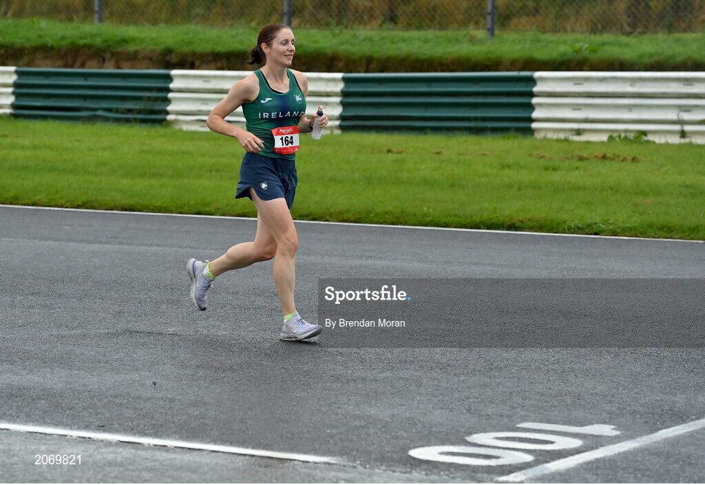 21 August 2021; Patricia McLoughlin of Le Cheile AC, Kildare, representing Ireland, competing in the Irish National 50 kilometre and 100 kilometre Championships, incorporating the Anglo Celtic Plate, at Mondello Park in Naas, Kildare. Photo by Brendan Moran/Sportsfile