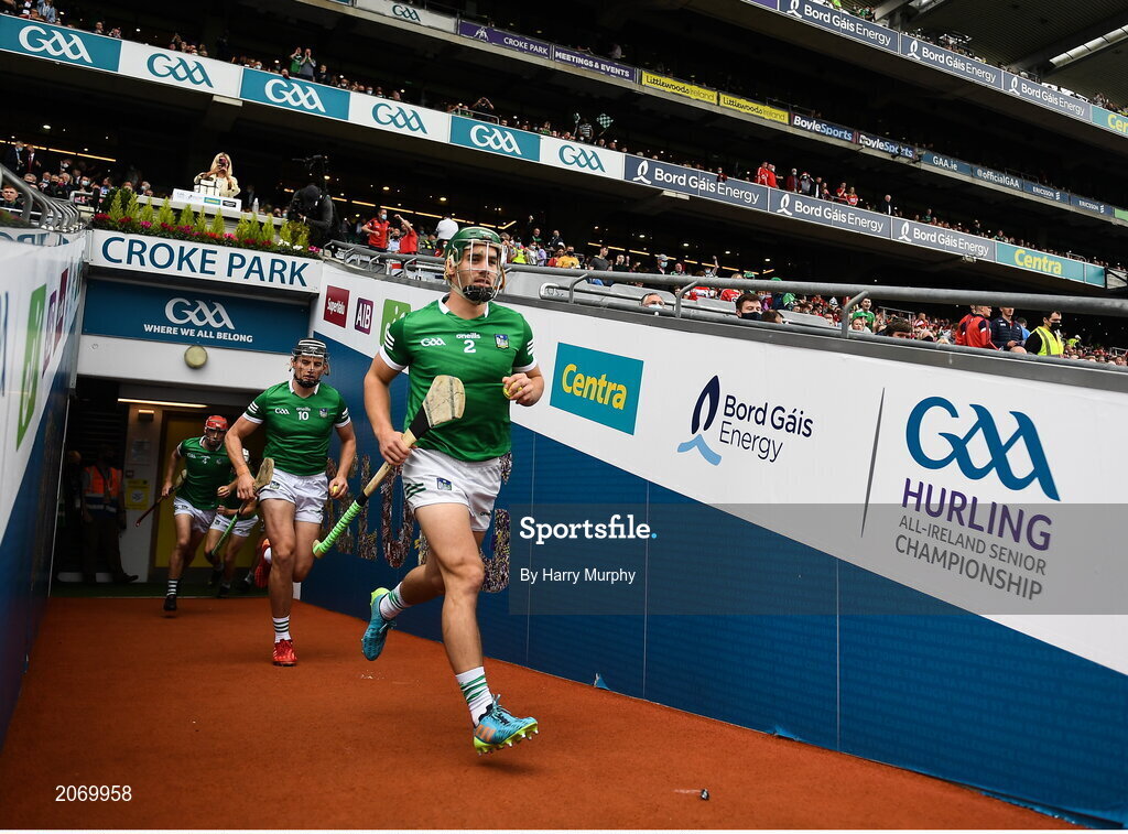 22 August 2021; Seán Finn of Limerick runs out before the GAA Hurling All-Ireland Senior Championship Final match between Cork and Limerick in Croke Park, Dublin. Photo by Harry Murphy/Sportsfile