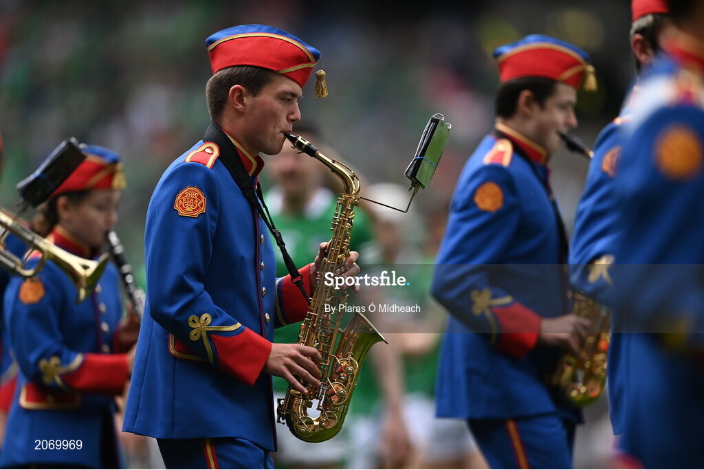 22 August 2021; The Artane School of Music Band leading the parade before the GAA Hurling All-Ireland Senior Championship Final match between Cork and Limerick in Croke Park, Dublin. Photo by Piaras Ó Mídheach/Sportsfile