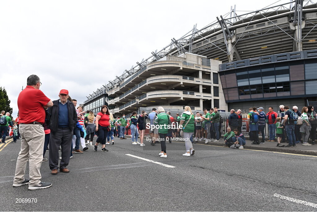 22 August 2021; Supporters outside Croke Park before the GAA Hurling All-Ireland Senior Championship Final match between Cork and Limerick in Croke Park, Dublin. Photo by Piaras Ó Mídheach/Sportsfile
